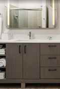 Feel at home in this fully equipped one-bedroom, one-bathroom suite featuring a modern kitchen with full-size appliances including a refrigerator, dishwasher, microwave, stove-top, and pantry. Conveniently situated in every unit, the full-size washer and dryer is accompanied by a living area adorned with modern design elements and comfortable furnishings. The bedroom offers maximum relaxation with a king-size bed, soothing color scheme, and a closet with efficient storage shelving.