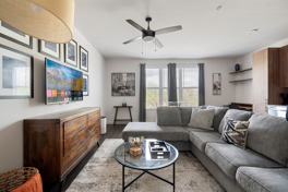 Everything you need is within easy reach in this apartment. Interior features include built-in USB ports, stainless steel appliances, washers and dryers, keyless entry, spacious closets, and quartz counters. The building offers a lounge, bark park, and an impressive wellness studio and gym. This gated complex provides free street parking, and the unit is secured by smart lock entry, welcoming you into a spacious living space with hardwood floors, high ceilings, ceiling fans, Wi-Fi access, and a Smart TV. The bathroom features a shower with a full-sized tub, complimentary toiletries, and a blow dryer. The bedroom is equipped with a super comfort queen memory foam mattress, a cedar-lined closet, luggage racks, and plenty of outlets for all your electronic devices. The kitchen is fully equipped with full-sized appliances, a microwave, coffee maker, toaster, blender, food processor, pots and pans, and basic spices for cooking.