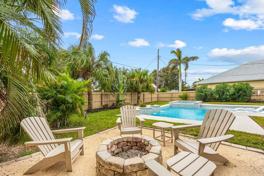 Highlights of this stunning space include a prime location just one block from Cocoa Beach, where sun, surf, and seaside fun await. Enjoy a private outdoor oasis with a heated pool, hot tub, outdoor shower, BBQ grill, and fire pit for evening relaxation. The home boasts modern comforts and coastal charm with updated interiors and beach-inspired decor, making it easy to unwind after a day of exploring. The fully equipped kitchen is perfect for home-cooked meals, featuring modern appliances and plenty of space. Relax and recharge in the spacious living room or cozy up in one of the three bedrooms. For entertainment, enjoy a game of pool in the game room or challenge someone to a game of corn hole in the backyard.