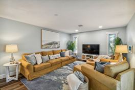 This home features a tastefully decorated living area with plush seating and smart TVs. The large, fully equipped kitchen includes all necessary appliances. Enjoy the screened lanai, a gleaming heated saltwater pool, and a fully equipped game room with table tennis, a dartboard, and foosball. Complimentary bikes are available for exploring the charming surrounding area.