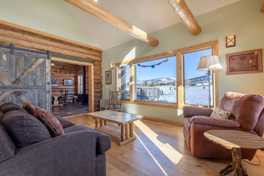 Embark on an unforgettable journey in this delightful hand-built log cabin, perfectly situated for exploring the majestic Yellowstone and Grand Teton National Park region. Ideal for up to four guests, it features a lofted sleeping area with a queen bed and a sleeper sofa in the living room. The cabin is equipped with a full kitchen, 1.5 bathrooms, a dining area, and a deck with breathtaking views of the natural surroundings.