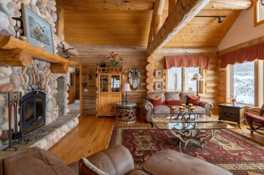 Each bedroom embodies its own unique theme. The master suite on the main floor features a queen-size bed, while downstairs you’ll find a king-size bed in one room and queen-size beds in the other two. The open kitchen, flooded with natural light, is a welcoming space with bar stools for four, including a small saddle for the little ones, complementing the dining table that seats six. Relax in the western-themed living room, which boasts expansive second-level views on one side and a cozy stone-hearth fireplace on the other. Tucked neatly in the corner is a small workspace perfect for quiet reflection or remote work. For entertainment, head down to the recreation room on the daylight basement level, where a Smart TV with satellite and Wi-Fi offer all the comforts of home. This two-level log cabin features expansive decks and patios, incredible views, and serene privacy, perfect for unwinding after a day of exploration. The basement's recreation room, conveniently located near three of the bedrooms, is fully equipped with a wet bar, mini fridge, and countless games. Step outside to the patio where seasonal outdoor dining and relaxation await.