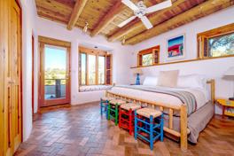 Feel at home in this beautiful and private adobe-style home, offering the charm of country living less than ten minutes from the city center. Enjoy the rooftop deck overlooking the city, complete with indoor and outdoor kiva fireplaces, providing a true haven away from home.