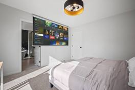 Experience the ultimate getaway in this spacious 7-bedroom home, complete with a karaoke lounge, board game room, central AC, and endless amenities for relaxation and fun. This large home comfortably sleeps 14 people and features a fully stocked kitchen, a 100" projector with a king bedroom, twin bunk beds on the main floor, three queen bedrooms with TVs on the second floor, and two queen beds in the basement. Enjoy the convenience of two washers and dryers, four full-size bathrooms, central heating and AC, and free parking in a two-car garage and driveway.