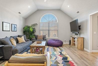 This thoughtfully designed 3-bedroom, 2-bath home is tailored for cyclists, families, and friends visiting Bentonville. The sleeping arrangements include 2 king-size beds and 1 queen bed, all with premium linens and plenty of pillows. The open-concept living area features a large sectional sofa, a smart TV with streaming apps, board games, and books for downtime. The kitchen is fully stocked with cookware, a dishwasher, modern appliances, a coffee maker, toaster, microwave, and generous counter space. There are 2 full bathrooms with fresh towels, soaps, and a hair dryer. The backyard features a private hot tub for post-ride recovery, a gas grill for outdoor meals, and a patio seating area with string lights for evening relaxation.