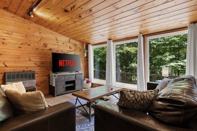 The cabin offers high-speed Wi-Fi, making it remote work-friendly. A laptop computer is not included.