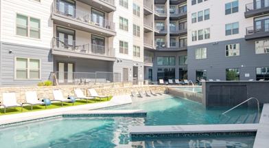 A luxurious and carefully curated lifestyle for its residents. This crafted community provides refined amenity spaces that promote a social and comfortable atmosphere. The resort-style pool deck with cabanas, coworking and office spaces, and the 5th story lounge with downtown views are just some of the amenities that cater to a unique and modern lifestyle. Residents can also take advantage of the spacious fitness and yoga center that offers a refreshing escape from the hustle and bustle of city life.