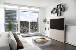 This 590sq. ft 1bedroom + den unit at Lougheed Heights is located on the 14th floor and comes with a very spacious layout and beautiful east-facing city views that brings lots of sunshine. The apartment has numerous built-in features including a built-in extendable dining table (seating for 8) and sleep THEATRE (hidden fold-down sofa bed) which make up BOSA's Smart Space System. The unit comes with light laminate flooring, quartz countertops, and high-end Bosch appliances. The building comes with Concierge Service and offers 17000 sq. ft of amenity space including a pool deck, wellness centre, gym, kitchen equipped social lounge dining room, BBQ area, and more! It's located in an ideal central location and very close to the Burquitlam and Lougheed skytrain station, Highway #1, restaurants, shops, parks, schools and SFU.