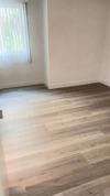 Laminate wood floors with porceline tile in kitchen and bathrooms.