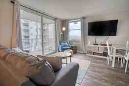 Step inside to discover a meticulously designed space, complete with a fully equipped kitchen for culinary adventures, a cozy living area for relaxation, and complimentary Wi-Fi for seamless connectivity. Beach essentials such as chairs, towels, and linens are provided, ensuring a hassle-free escape. Awaken to the soft morning light filtering through your private balcony or take a leisurely stroll along the bayfront promenade. As dusk descends, unwind with a glass of wine and soak in the captivating vistas of the bay.