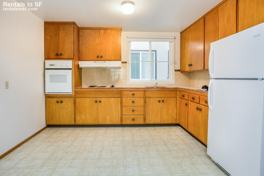 Open living room and kitchen layout. Appliances include a refrigerator, electric cook top with hood and separate oven. One full bathroom with tub. Large hall closet and separate linen closet . Carpet throughout unit (except kitchen and bathroom).