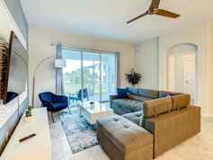 Enjoy full complimentary access to the resort's amenities, including a gym, heated swimming pools, a lazy river, and a water park. The main clubhouse, Oasis Club, is just a 7-minute drive away and offers a variety of activities such as a spa center, golf, and a restaurant, some of which may require an additional fee. The condo itself is equipped with four smart TVs, a washer/dryer, and high-speed internet, providing all the comforts you need.