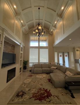 * Family room with a stunning barrel-vaulted high ceiling