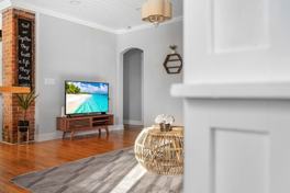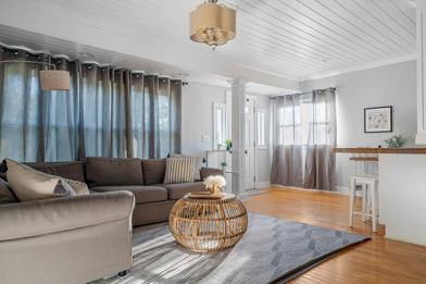 This home features three spacious queen bedrooms, each sleeping two, and a full bathroom with a walk-in shower. The fully equipped kitchen boasts stainless steel appliances, and there's a free washer and dryer for your convenience. Enjoy high-speed Wi-Fi, a smart TV, and a Keurig coffee machine. The large outdoor kitchen includes a stainless steel stove top. Free parking is available for up to two vehicles. The MIL suite offers a quaint farmhouse-styled studio with a queen bed, a full bathroom with a walk-in shower, and high-speed internet.