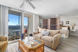 Inside, the condo is clean, comfortable, and well maintained. The space features a king bed, a fully equipped kitchen, fast Wi-Fi, and a TV with cable and streaming capabilities. Fresh linens, bath towels, and beach towels are provided for your stay. A starter set of essentials is included for your arrival, including small amounts of shampoo, conditioner, body wash, toilet paper, paper towels, dish soap, dishwasher pods, and trash bags.