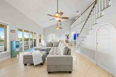 Experience the ultimate getaway in this remodeled 5-bedroom 5-bathroom home. Indulge in the chef's kitchen featuring top-of-the-line Viking appliances. Unwind in the dedicated media room, equipped with a large screen TV, wet bar, and gaming system. Each of the five spacious bedrooms offers a private ensuite bathroom. Dine in elegance in the formal dining room. Step outside to a tropical paradise with a waterfront patio and inviting pool. Catch an amazing rocket launch and watch the dolphins play.