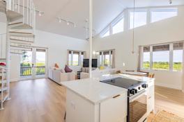 Welcome to your perfect getaway! This charming home features a spacious open-concept floor plan designed for relaxation and connection. With two bedrooms, including a cozy loft bedroom overlooking the living area, there’s room for everyone to unwind. The main living space includes two twin sleeper sofas, making it ideal for families or groups of friends. Natural light pours into the airy interior, complementing the seamless flow between the living, dining, and kitchen areas. Whether you’re enjoying quiet moments or gathering for meals, this inviting space offers the comfort and convenience you need for a memorable stay.