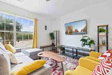 Step inside and you'll be greeted by a bright and welcoming living space, featuring modern furnishings, tasteful decor, and all you need for a comfortable stay. With 5 comfortable beds, this apartment is great for workers, families, and visiting students.
