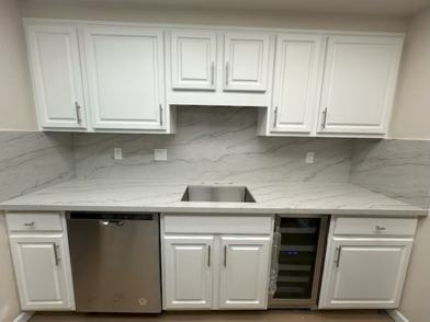 - Kitchen renovation in progress: will have newly refinished hardwood floor, top-end quartz countertops and backsplashes throughout, refinished cabinets and hardware.