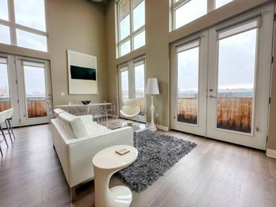 Discover the best of Rochester in this stunning two-story penthouse unit. Feel at home in this 1,100-square-foot residence with two bedroom suites, an open atrium area, and two stories of windows providing a delightfully bright interior with views of nearby parks.