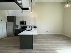 This spacious duplex home features high ceilings, abundant natural light, and contemporary finishes throughout. The kitchen includes slim-shaker cabinetry, quartz countertops, and stainless steel appliances. Additional highlights include an in-unit washer and dryer, smart thermostat, and thoughtfully designed living spaces.