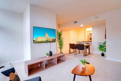 This apartment is in the heart of National Landing (Pentagon City), a vibrant and well-connected neighborhood perfect for both business and leisure travel to the D.C. area. You're steps from premier shopping at Fashion Centre at Pentagon City and just two Metro stops from D.C.'s National Mall and Smithsonian Museums. Surrounded by top-rated local dining, from wood-fired pizzas at Matchbox to authentic Thai at Thaiphoon. You are just a short walk from the Pentagon City Metro Station, putting all of D.C.'s landmarks at your fingertips. The Reagan National Airport (DCA) is just one Metro stop away, making for a stress-free commute. You are right next to the iconic 18-mile Mount Vernon Trail, perfect for a scenic bike ride, run, or walk along the Potomac River. For your convenience, a large and well-stocked Harris Teeter supermarket with a pharmacy and Starbucks is located right at Pentagon Row.
