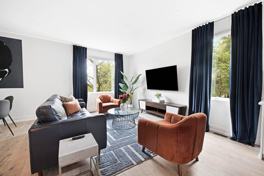 You'll love the central location, just minutes from downtown and Broadway, and the locally inspired decor. The apartment boasts a fully equipped kitchen, a rooftop terrace with skyline views, smart TVs throughout for easy streaming, high-speed Wi-Fi connectivity for work and play, and a secure two-car garage. This dog-friendly apartment welcomes up to two dogs with a $150 pet fee per stay, with no breed or weight restrictions.