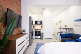 This studio is a brand new and fully renovated apartment offering a comfortable and luxurious living experience. It features a spacious living room lounge, a cozy bedroom with a queen-size bed and memory foam mattress, a full bathroom, a fully equipped kitchen, and an in-unit washer and dryer. The apartment boasts high-quality renovations, new furniture, ample natural light through two big windows, and complimentary clean linens and towels. Guests will enjoy the added convenience of complimentary high-speed wireless internet and 120 HD cable channels, making it an ideal choice for a memorable New York City vacation or a comfortable and convenient stay.