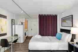 The studio is fully equipped with modern furnishings and everything you need in a kitchen to dine at home. It's ideally suited for business travel or when relocation plans bring you to Atlanta, ensuring you feel at home.
