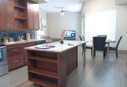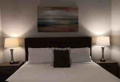 This apartment features a sleek, fully equipped kitchen with stainless steel appliances, granite countertops, custom cabinetry, and a kitchen island. Enjoy the convenience of an in-unit washer and dryer, as well as a private balcony with scenic views. The stylish bathroom includes a large soaking tub, a walk-in shower, and designer finishes. Ample closet space is provided, including a walk-in closet. For entertainment, there is a 50” TV in the living room and a 40” smart TV in the main bedroom.