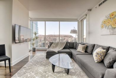 This luxury condo is located in the heart of downtown Montreal, surrounded by the city's best restaurants, shopping, and entertainment. The apartment features two bedrooms and two bathrooms, a full kitchen, and a dining area. The living room is equipped with a 60” smart TV, and the kitchen is fully stocked for cooking, including a Nespresso coffee machine. Enjoy the stunning city views from the rooftop terrace.