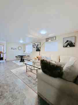 Enjoy a comfortable stay in this spacious apartment, just a 5-minute drive from Ted Stevens Anchorage Airport. Ideal for families or groups seeking convenience and comfort, this apartment offers free parking, a washer and dryer, a fully equipped kitchen, and cozy bedrooms. Perfect for both short-term and long-term stays, you'll feel at home here.