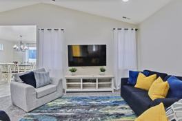 The entire home is the ultimate in spa-like luxury! Relax and rejuvenate. The bedrooms have been decorated with modern decor, navy and white. In the living area, enjoy a 65" Samsung Smart TV, equipped with Netflix, Hulu, Amazon prime video and so much more. Enjoy a fully fenced backyard and patio space. The home is very family friendly and stocked with children's plates, bowls, utensils, books and toys for entertainment.