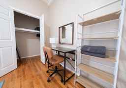 This bright and airy apartment features a modern kitchen with stainless steel appliances, elegant hardwood floors, a stylish bathroom, and high ceilings. On-site laundry facilities and Amazon lockers are available for secure package delivery. All utilities are included.