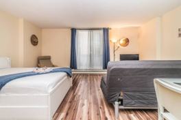 In the heart of Montreal's vibrant streets, this sanctuary offers a haven veiled from the city's frenetic pace. Behind the elegant facade of the hotel that shares its name lies a community thriving on exclusivity and luxury. Residents enjoy a lifestyle where tranquility seamlessly intertwines with urban convenience, with desires within reach, just a stone's throw away from the serene enclave they call home. This apartment welcomes two guests and features a studio room with a queen bed and a full bathroom. Enjoy the convenience of an elevator and a security system for peace of mind.