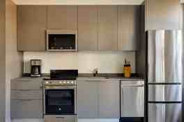 This apartment features a chef-ready kitchen, fast Wi-Fi, a 55” TV, in-unit laundry, a full refrigerator, air conditioning, and an Apple TV with streaming.