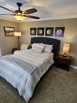 Private master bedroom suite with private master bath. Unit has its own exterior entry door and own private deck with umbrella table and chairs. This is 1 bedroom and bathroom but you have access to and use of the entire house - including gourmet kitchen, laundry room, living room and dining room. Plus usage of huge patio with grills, firepit and pergola.