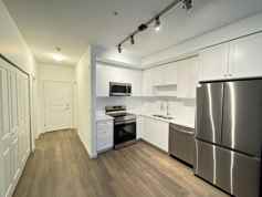 Discover modern urban living in the heart of Surrey's vibrant Fleetwood neighborhood at Fleetwood Tynehead brand-new 2025-built condo complex, part of the exciting Fleetwood Village 2 development, offers the perfect blend of convenience, comfort, and connectivity, just steps from the Surrey-Langley SkyTrain extension for effortless commutes to downtown Vancouver and beyond. This spacious 771 sqft unit features a thoughtfully designed layout with 1 bedroom, 1 full bathroom, and a versatile den ideal as a home office, guest room, or cozy reading nook; it boasts a gourmet kitchen with sleek full-size stainless steel appliances, ample cabinetry, and a breakfast bar overlooking the open-concept living and dining area—perfect for entertaining or everyday meals. Residents enjoy resort-style perks including a state-of-the-art yoga studio, social lounge with full kitchen, games room, and meeting spaces for wellness, relaxation, and community connection, plus secure underground parking, bike storage for 1,013 spots, and visitor stalls for hassle-free living. In this prime location, benefit from quick routes to Hwy 1 and Fraser Highway, surrounded by shops, parks, schools, and eateries—walk to Fleetwood Village for groceries, cafes, and more within a 5-minute stroll—while staying close to green spaces and the Surrey Sport and Leisure Complex for fitness and family fun in a peaceful yet connected community vibe.