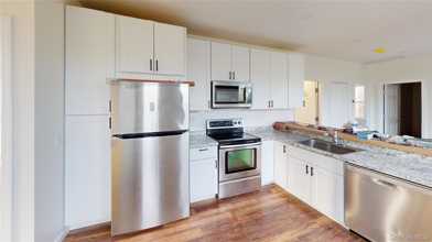 This unit has been a long time coming to market. Just fully renovated down to studs, with new windows, New roof, and completely new layout. Everything is new, both bathrooms, now have heated floors, and all surfaces and fixtures are new. There is an open floor plan for the living room, and eat-in kitchen complete with a beautiful butcher block bar area with amazing pop up outlets complete with usb charger ports. The kitchen cabinets are 42" tall, creating much more storage space. The master bedroom has a ensuite Master bathroom with the in-unit laundry. Enjoy a new heating and cooling system conveyed through ducts to each room. The unit received spray foam insulation in the floor, walls and ceiling. The energy usage in the unit will be very low compared to other units of its size. You will also get 2 assigned parking spaces in the private driveway. Only you, the first floor tenants and the landlord will use the driveway. The rear concrete patio is shared between the first floor tenants, second floor tenants and the landlord. This is your opportunity to live on the top floor which is only up one staircase, and be the first people to occupy a brand new unit in a sturdy 121 year old building with parking for 2 cars while being right in the middle of both Pelham and New Rochelle Motro North stations.