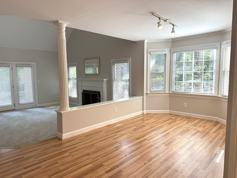 -Formal dining room opening to a sunken living room with vaulted ceiling