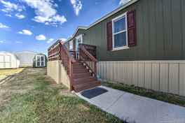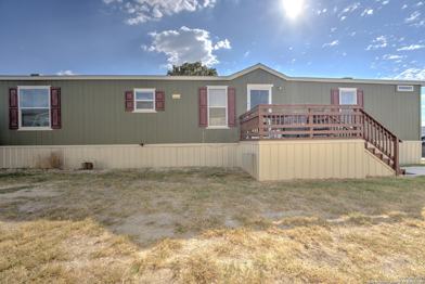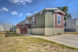 Welcome to this inviting 3 bedroom, 2 bathroom manufactured home offering 1,088 square feet of comfortable living space. The open floor plan creates a seamless flow between the kitchen and living area, providing a spacious and welcoming environment for gatherings and daily living. The primary suite features a full bath complete with a double vanity, a separate shower and tub, and a generous walk-in closet. Two additional bedrooms share a well-appointed second bathroom, making this home ideal for family, guests, or a home office. An inside laundry room adds convenience, while a covered porch and backyard shed extend your living space outdoors. Perfectly situated near the Loop 1604 corridor, you will enjoy easy access to shopping, dining, entertainment, and major roadways. This property combines practicality with comfort, offering an excellent opportunity for first-time buyers, downsizers, or investors.