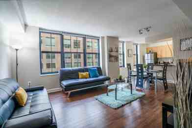 Feel at home in this beautiful 2-bedroom apartment overlooking Baltimore's Inner Harbor. Fully furnished with all appliances and comforts, this apartment offers a true home away from home experience. The building boasts amenities such as a rooftop swimming pool, gym, hot tub, and business center, making it ideal for families and business travelers alike.