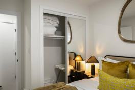 Inside, relax with your favorite shows on the smart TV, stay connected with fast Wi-Fi, or catch up on work. Whether you’re here for business, study, or leisure, this curated garage suite is your stylish home base in Edmonton. The home comfortably sleeps four guests with a queen bed in the bedroom and a double-sized sofa bed in the living room. The kitchen is fully loaded with stainless steel appliances such as a microwave, fridge, and electric stove, along with glasses, mugs, dishes, cutlery, and more. The washroom is equipped with complimentary soap, shampoo, and body wash, complete with a shower, sink, and toilet. The laundry room features a washer and dryer with complimentary supplies such as detergent, iron, and ironing board.
