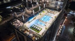 Resort-style Pool - Escape the hustle and bustle of city life by taking a dip in our sky-high resort-style pool and heated spa on level 24. Outdoor entertainment is also nearby with a 180” jumbotron. Surrounded by lush landscaping, find a poolside bar and luxurious lounge that reflects the decadence of art deco. This oasis in the sky provides a serene retreat just steps away from your door. Your city sanctuary where you can unwind and soak up the Texas sun.