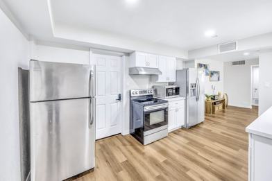 The kitchen comes equipped with a fridge (x2), sink, oven, stovetop, as well as basic cookware, making it the perfect spot to whip up a meal or two.