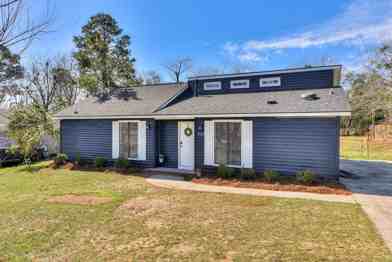 This beautifully designed 3-bedroom, 2-bathroom residence boasting 1,295 square feet of comfortable living space, is situated on a spacious .37-acre fenced lot. This property features a large outbuilding, perfect for additional storage or a workshop. Upon entering, you're greeted by the impressive cathedral ceiling and inviting dormer windows that flood the interior with natural light. The owner's suite includes two ample closets and a luxurious walk-in tile shower plus luxurious dual floating vanities and ceramic tile floors in the ensuite bathroom. The home showcases LVP flooring throughout for easy maintenance and a modern aesthetic. Enjoy the convenience of a dedicated mud room and a functional laundry room, making daily routines a breeze. Gather around the modern wood-burning fireplace with cedar mantle during chilly evenings or entertain guests at the breakfast bar overlooking the contemporary kitchen, featuring stainless steel appliances. The stylish tile wall bath/shower combo enhances the hall bathroom, while ceiling fans in all bedrooms and the living room ensure comfort year-round. Experience outstanding curb appeal and the perfect blend of functionality and style in this charming property. Conveniently located near Diamond Lakes Park and 4.5 miles from Fort Gordon Gate 5.