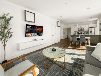 The serene bedroom features a plush queen-sized bed with premium linens and soft pillows, ensuring a restful night’s sleep. A spacious closet and convenient storage options make it perfect for both short-term and extended stays. The modern, fully equipped kitchen includes stainless steel appliances, cookware, utensils, and essentials — everything you need to prepare a delicious meal or enjoy takeout from one of Northern Liberties’ top restaurants. The sleek, contemporary bathroom is designed with high-end finishes, a spacious vanity, and a spa-like shower to refresh and rejuvenate.