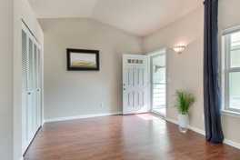 Beautiful end-unit condo in a prime DuPont location next to Clocktower Park! This desirable 1-level home offers 2 bedrooms, 1.75 baths, and a spacious open floorplan with vaulted ceilings and skylights for abundant natural light. Enjoy granite counters in the kitchen and baths, gas range, laminate flooring, gas fireplace, plus AC for year-round comfort. The primary suite includes an attached bath and double closets for extra storage. Relax on your covered porch with park views or enjoy outdoor dining in the fully fenced private side patio/yard. Attached 1-car garage plus parking for 1 vehicle behind garage. Short stroll to miles of trails, playgrounds, town center shops, dining, and community events at the park including farmers market & live concerts. No pets please.