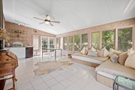 This charming cottage features a fully equipped kitchen for preparing meals, high-speed internet access, and an outdoor BBQ grill for cooking and dining alfresco. The Florida room is set up as a loft-style space with two single daybeds and a privacy curtain, adding flexibility and extra sleeping space.