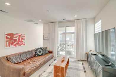 This home features a home theater system, a community pool and gym, and proximity to San José, Berkeley, and San Francisco. The bedrooms include a king bed, a queen sleeper sofa, and a queen bed. Outdoor living is enhanced with a furnished balcony with a fire pit, a patio with a gas grill and seating, and two bicycles provided. Indoors, enjoy two smart TVs, a 4-person dining table, exercise equipment in the garage, and high-end furniture from Restoration Hardware and CB2. The kitchen is fully equipped with cooking basics, a refrigerator, stove/oven, microwave, dishwasher, dishware/flatware, an automatic espresso machine, and a toaster oven.